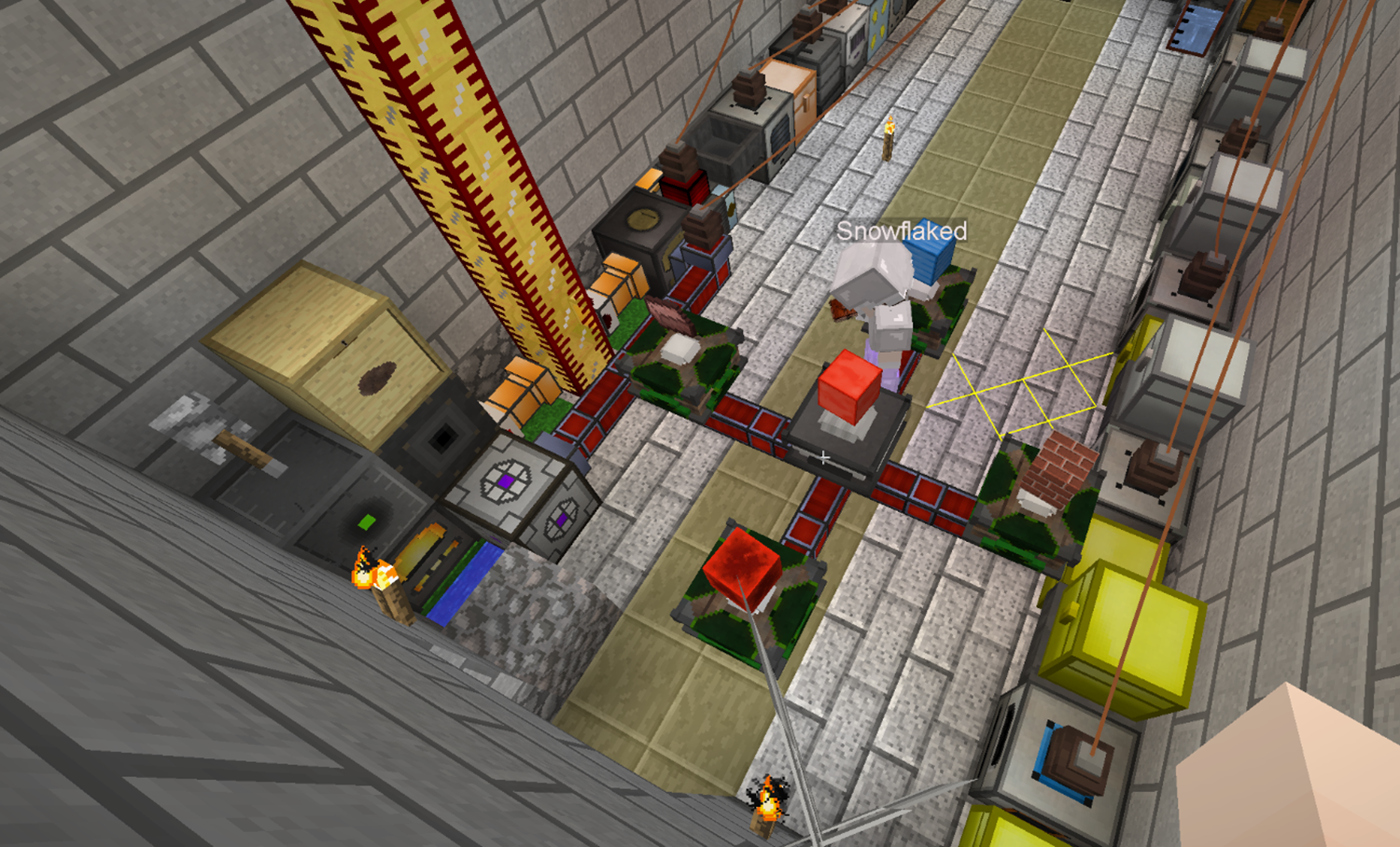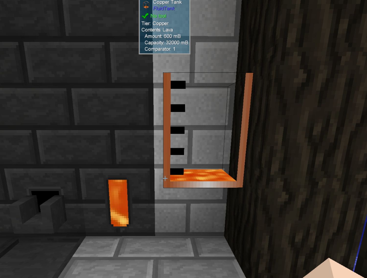 용광로에 용암을 공급하는 파이프를 놓았어요. 그리고 그 위에 탱크를 놓을 예정잍데.